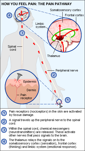 I did some research on this same kind of effect, but in the muscles. I practiced neuromuscular massage, with pressure points, etc. I guess the theory is to interrupt the pain cycle. But it’s the nerves that carry the pain signals, not the muscles. And massaging or putting pressure on the muscles that hurt just sends the pain to another area, while also making the pressure point ache even more.