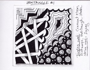 I don’t know if any of this makes any sense. I don’t know how drawing lines and shapes on paper has brought me to this place. I don’t know why trying to do something within a fixed time parameter is causing me such discomfort when I have always depended on having structure in my life to cope with everything. More importantly, have I been living my life with the best intentions for those around me and lesser intentions for myself? Or, was this simply a case of deciding to work on Zentangles using the less structured resource while having empty time to fill because my internet connection was lost for most of the day?
