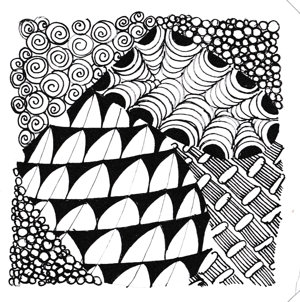 Tile 1 – Octobe 19 2015 Published October 19, 2015 at 1024 × 1032 in Zentangle Tile #1: My Body Has Limits Next → Tile #1 – String: B – Tangles: Bundles, Crescent Moon, Flying Geese, Printemps, Tipple