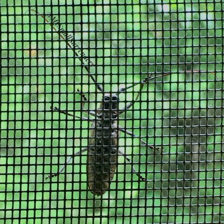 A few days ago, I was mesmerized by this unknown-to-me species of bug as it tried to gain entry to the indoors. As it clung to the fine mesh of the window’s screen, I imagined it yelling at me, “Let me in!” Although, I must admit, it was amazingly patient and thorough. It crawled up, down, across and then back again over the screen on the window trying to find a point of entry.