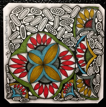 Since sharing that last tile, each successive challenge has stretched my creativity, introduced me to new patterns, and served as enjoyable distractions from my ongoing health challenges.