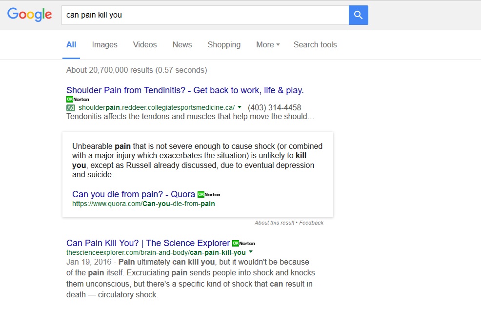 Can pain kill you? According to the responses from my Google search, yes, it can.